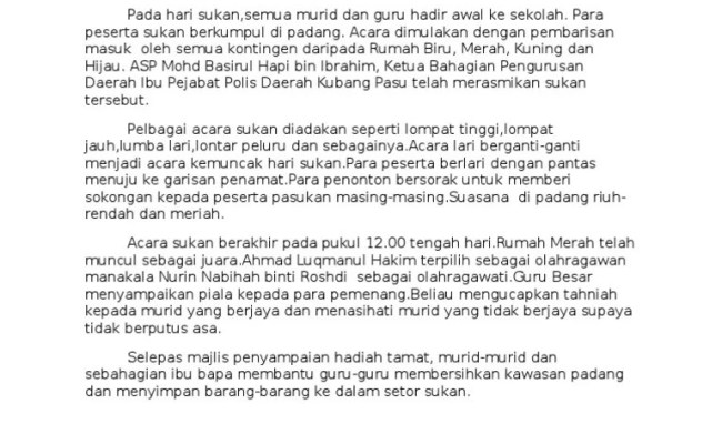 Contoh Karangan Laporan Hari Sukan Sekolah / Laporan Hari Sukan Negara Pdf. Karangan jenis ini menghendaki anda melaporkan sesuatu peristiwa yang didengar atau dilihat. Contoh karangan sambutan hari guru.